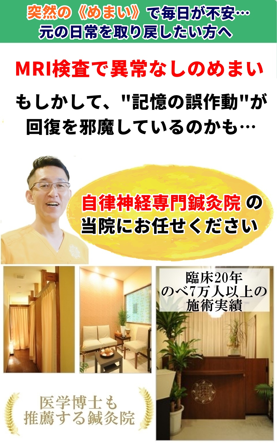 当院は、突然のめまいで不安な日々を過ごす方のための、自律神経専門の鍼灸院です。