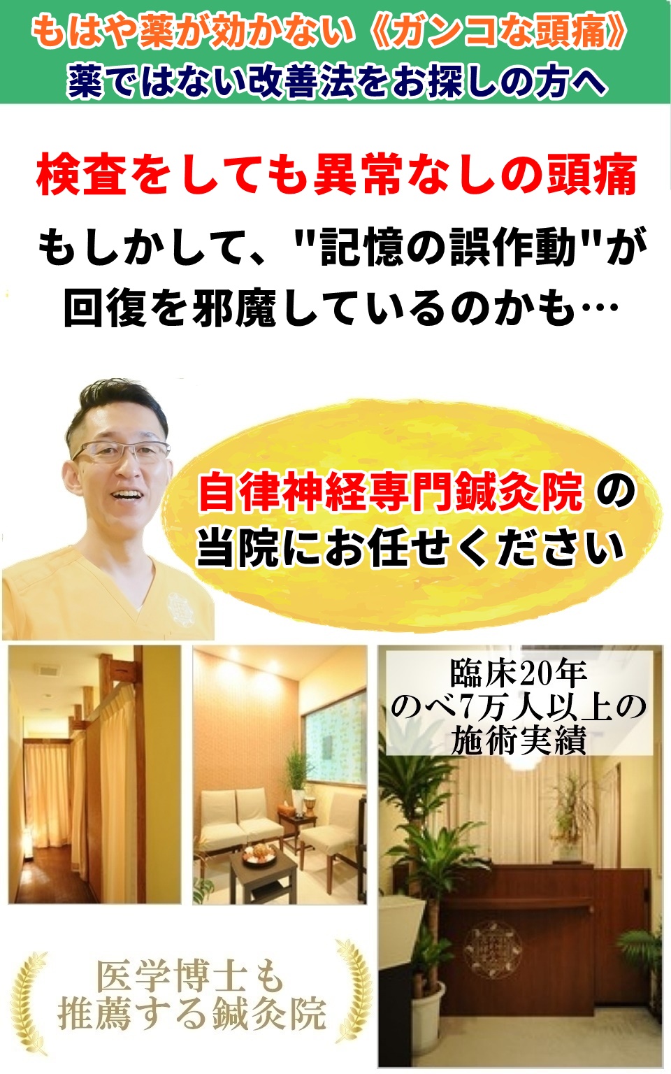 検査で異常のない、ガンコな頭痛の多くは、 実は「記憶の誤作動」によって引き起こされているのです。